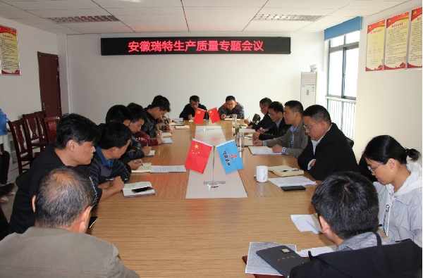 2018年11月1日,上午8:30,在安徽瑞特二樓會議室,召開了安徽瑞特生產質量專題會議,參會人員有公司領導班子成員,質量管理中心人員,生產管理中心大部分人員,物資管理中心人員及其他部門主要負責人。