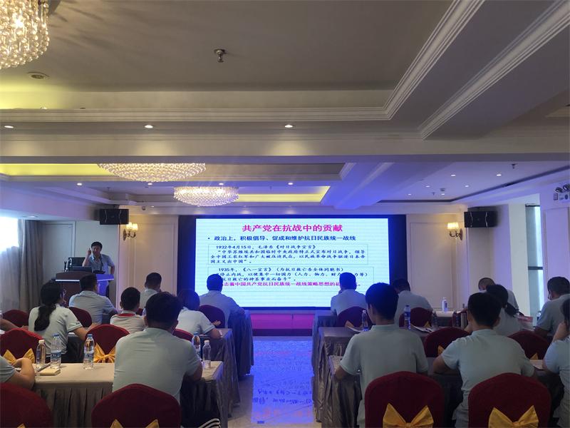 下午,安徽金寨干部學院研究部主任馬新民以《中國共產黨百年歷程與啟示》為主題,為全體人員上了一堂生動的黨課。馬主任用生動的案例講述了中國共產黨波瀾壯闊的發展歷程,并通過中國共產黨百年奮斗歷史啟示,引導大家在黨史學習中踐行新時代革命精神,切實增強社會責任感和時代使命感。