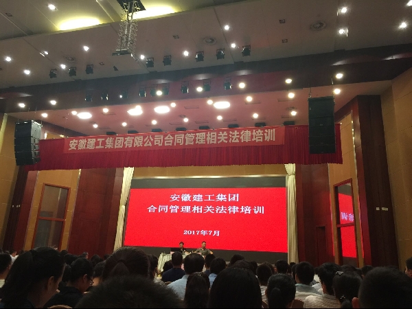 七月底,安徽建工集團組織下屬三十多家子分公司共600多名合同管理員及相關人員在安徽水利東方國際會議中心開展了為期兩天半的合同管理相關法律培訓。