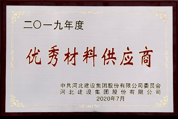 7月13日,蚌埠建材公司憑借在河北建設集團滁州五中項目、阜南人民醫院項目優秀的保供能力、完善的服務體系以及強大的品牌實力,獲河北建設集團“2019年優秀材料供應商”稱號。