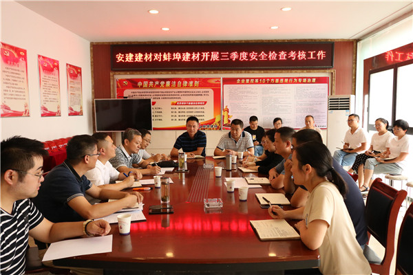 9月12日,安建建材董事、總經理、黨委副書記錢葉琳來蚌埠建材調研指導工作并帶隊開展第三季度安全檢查考核,安建建材董事、副總經理、黨委委員徐友修及安全考核檢查組人員陪同。