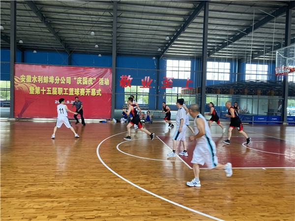 伴隨著運動員進行曲陸續入場、運動員代表、裁判員代表宣誓,將尊重對手、公平競爭、公正執法,努力完成大賽賦予的使命和任務。最后,由安徽水利工會主席兼黨委工作部部長朱樂華宣布安徽水利蚌埠分公司“慶國慶”活動暨十五屆職工籃球賽開賽。