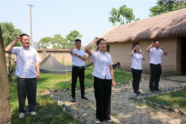 活動伊始,大家來到渡江戰(zhàn)役總前委孫家圩子舊址紀念館前,面對鮮艷的中國共產(chǎn)黨黨旗,全體黨員一起重溫入黨誓詞,再一次接受入黨誓詞的洗禮。