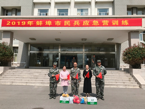 頂著炎炎烈日,蚌埠市基干民兵應急連正在市國防教育集訓基地開展為期12天的集中備勤訓練。9月25日上午,蚌埠建材公司黨支部副書記、工會主席沙薇莉及公司支部宣傳委員、綜合管理中心主任周花赴蚌埠市國防教育訓練基地看望慰問公司參加基地化訓練的兩名員工,并為他們送去了慰問品。