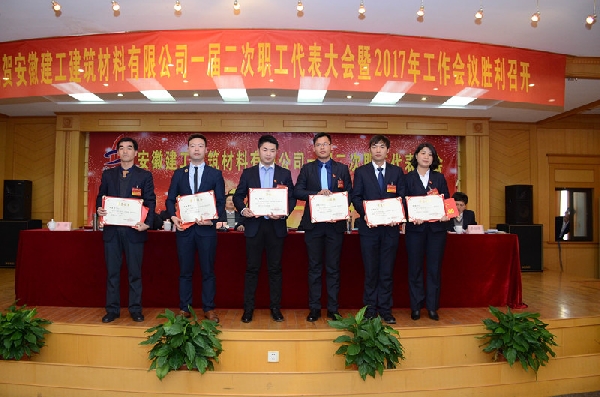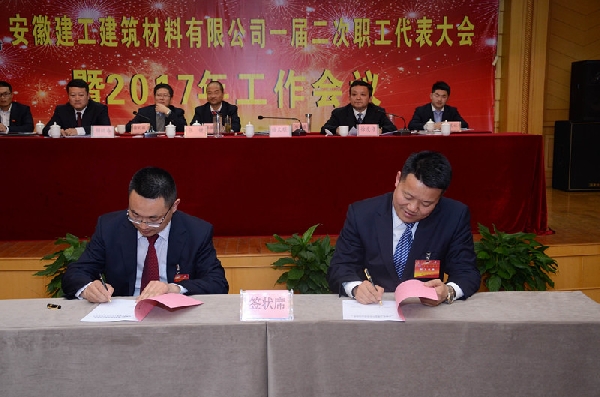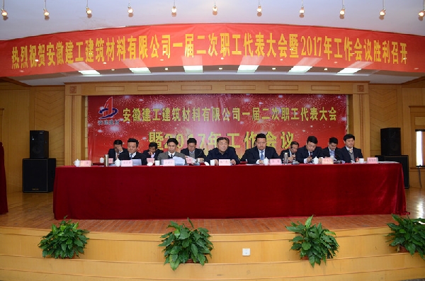 大會聽取并審議通過了《總經理工作報告》、《財務工作報告》、《業務招待費使用情況報告》、《安徽建工建筑材料有限公司薪酬管理制度》、《安徽建工建筑材料有限公司職工聯席會議制度》,簽訂了目標責任書,表彰了2016年度先進單位、先進集體、先進個人;集團黨委對公司領導班子成員進行了2015—2016年度民主測評。