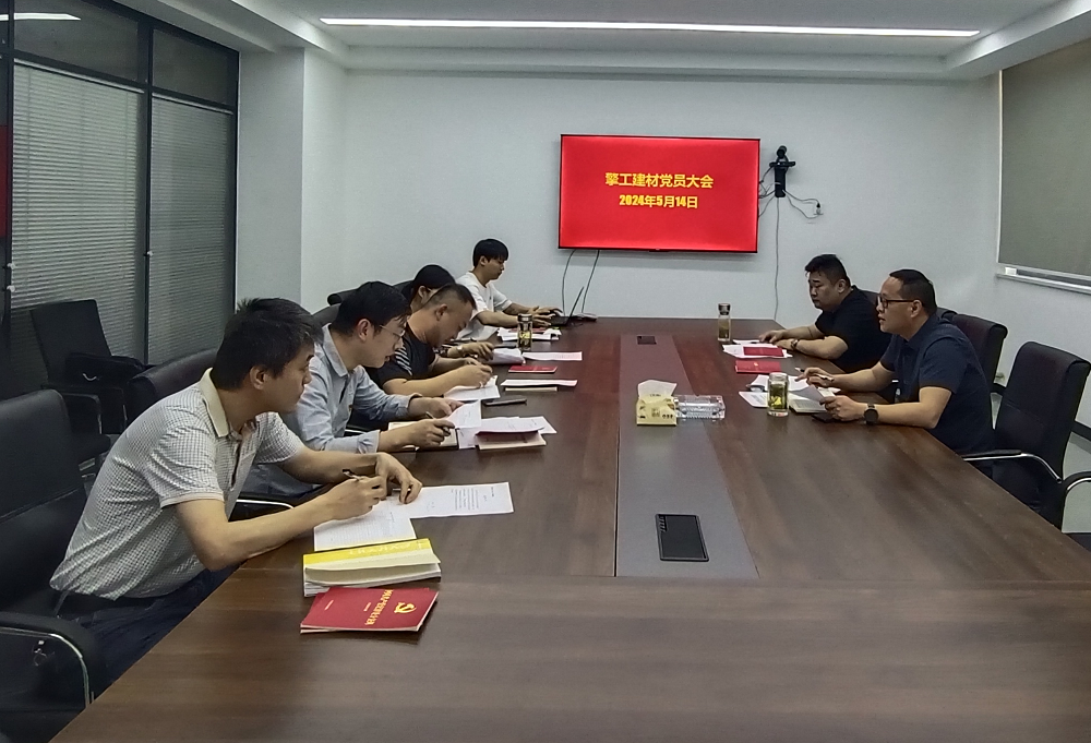 2024年5月14日下午,擎工建材黨支部召開黨員大會暨專題學習會議。會議由擎工建材黨支部書記許鵬主持會議,公司領導班子、各部門負責人、支部全體黨員、積極分子參加會議。