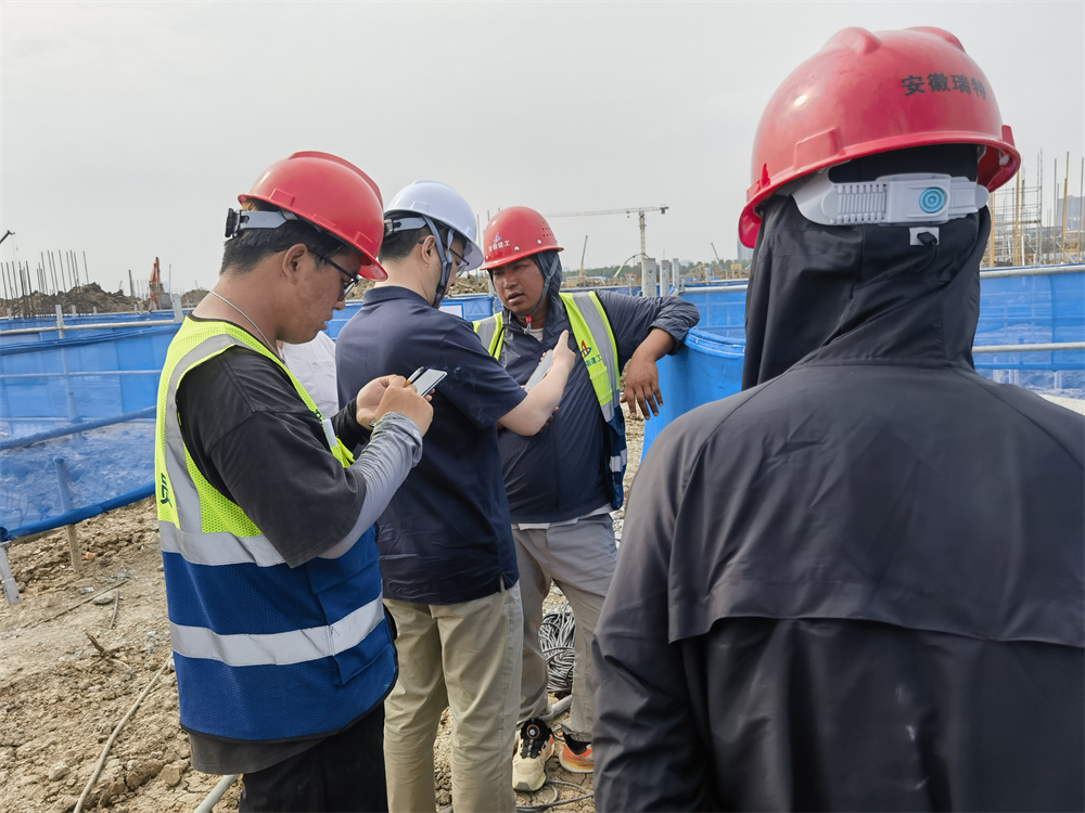 在項目施工現場,李鑫在認真聽取項目的生產安全保供情況后,與安徽瑞特、擎工建材,以及新途站、同大站的相關負責人和實驗室負責人員進行了深入的交流和探討,并就保供工作中遇到的問題進行協調解決。