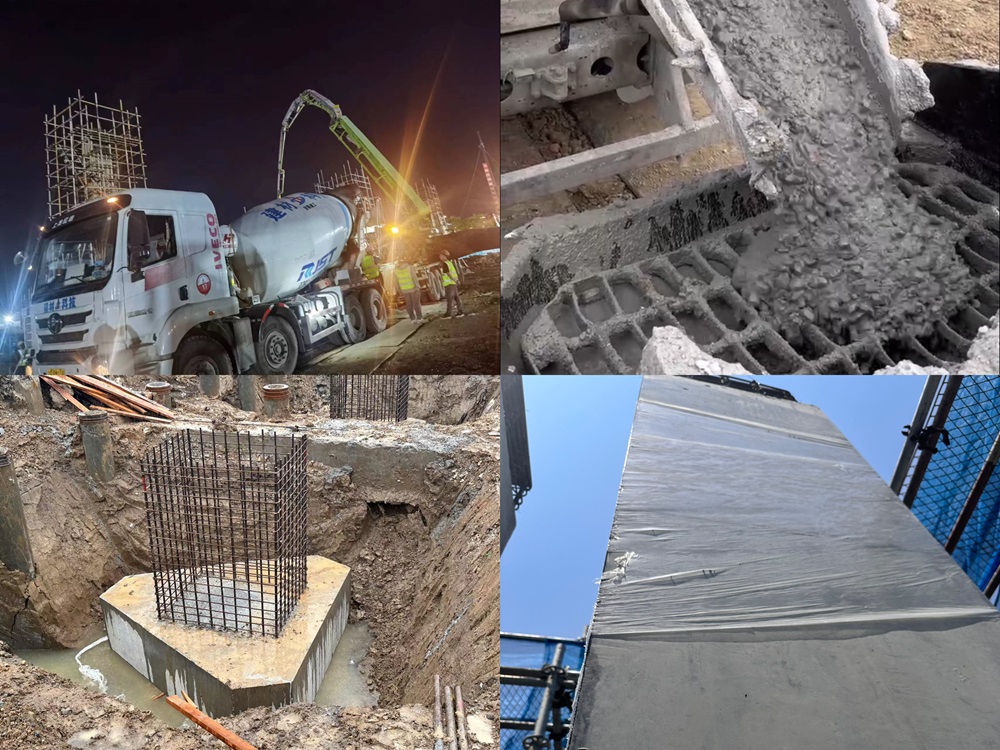 為保障項目順利澆筑,安徽瑞特各廠站通力協作,生產一線充分發揮工匠精神,齊心協力24小時連續生產;調度和試驗室人員現場全天值守,攻堅克難,連續奮戰保障順利澆筑;營銷人員24小時駐場,隨時保持與施工單位溝通,確保始終提供優質服務。