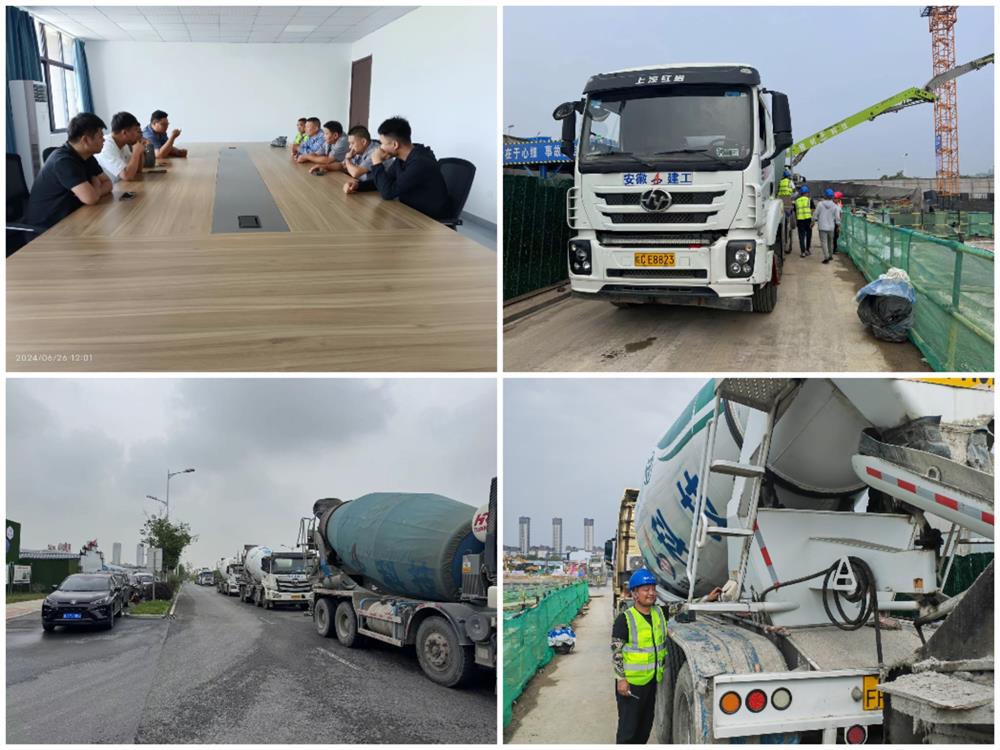 禹會站點全員錨定目標任務,落實生產組織預演、物資后勤保障、現場過程旁站指揮、應急處置措施等工作,順利完成安徽水利淮南瀾園悅府項目首次大體積筏板澆筑任務。