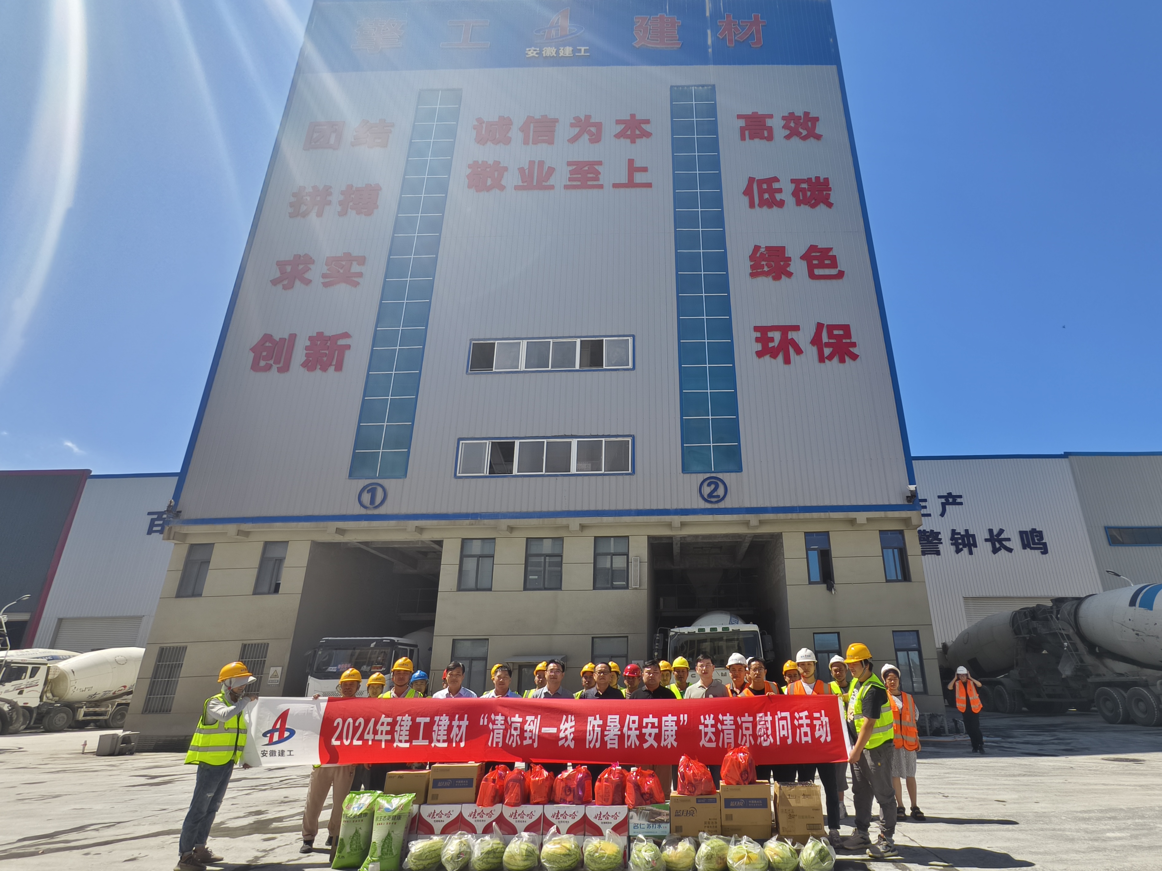 驕陽似火,熱浪襲人,近日來,連續(xù)高溫,給奮戰(zhàn)在一線的職工帶來了嚴(yán)峻的“烤”驗。為進一步做好暑期職工勞動保護和生活保障服務(wù),7月29日上午,公司黨委委員、副總經(jīng)理李鑫帶隊赴擎工建材,開展“清涼到一線,防暑保安康”送清涼慰問活動,為一線職工送去礦泉水、西瓜、綠豆等防暑降溫物品,并向堅守崗位的廣大職工表示誠摯的問候。