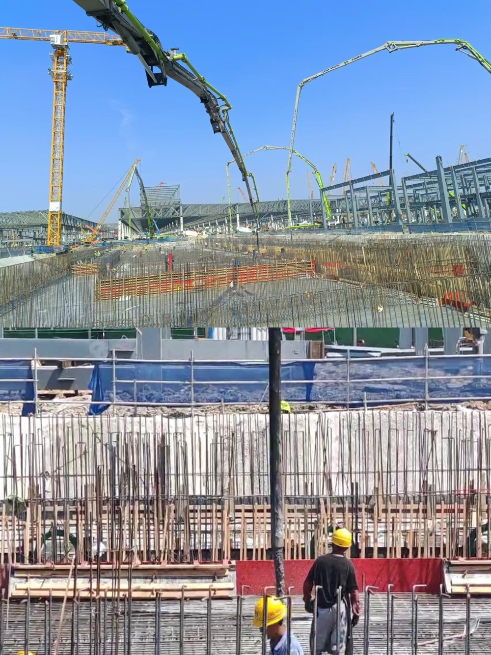 此次大體積筏板澆筑時間緊、任務(wù)重,難度大,澆筑期間最高溫度達38℃,持續(xù)高溫更是為澆筑任務(wù)帶來極大挑戰(zhàn)。為確保倉面順利澆筑,公司領(lǐng)導(dǎo)班子帶隊進行現(xiàn)場踏勘,并結(jié)合現(xiàn)場實際組織制定專項澆筑方案以及應(yīng)急預(yù)案。澆筑期間,各站點協(xié)同合作,各部門全程跟蹤服務(wù),做好材料保供、現(xiàn)場信息反饋、生產(chǎn)運輸、車輛統(tǒng)籌調(diào)度等工作,在全體人員的共同努力下,僅20小時完成澆筑,較原計劃提前10小時完成,高效率保障服務(wù)得到施工方高度認可。