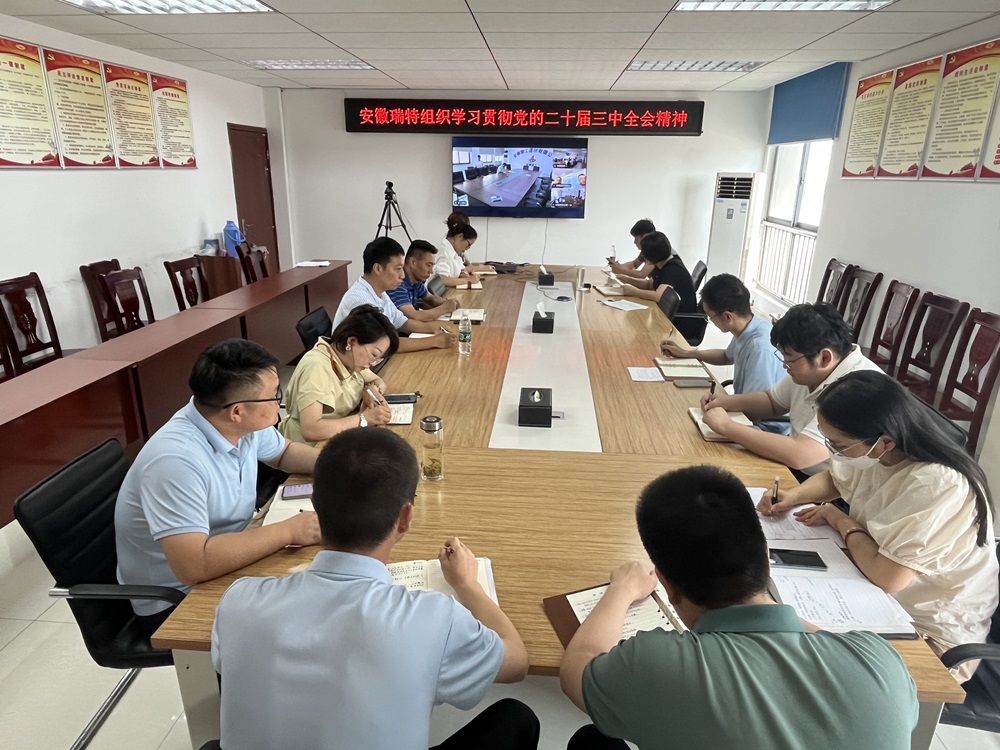 8月30日下午,安徽瑞特召開學習黨的二十屆三中全會精神專題會議,公司全體黨員、各部門負責人及青年職工參加。會議學習了《中共中央關于進一步全面深化改革、推進中國式現代化的決定》和《中國共產黨第二十屆中央委員會第三次全體會議公報》。