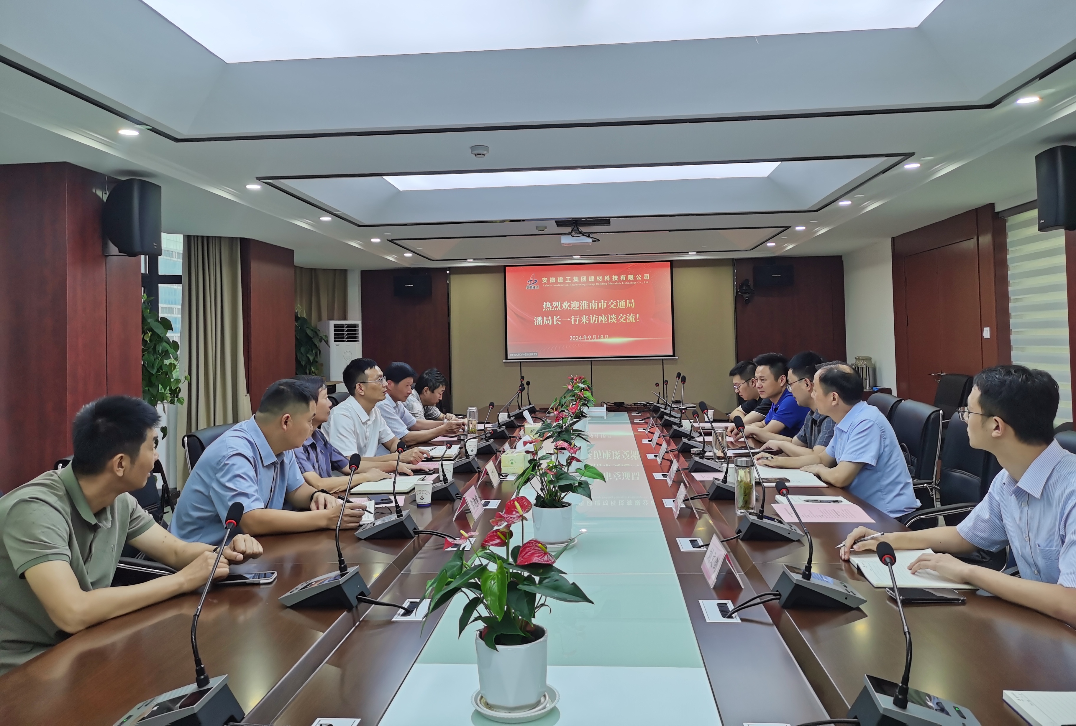 9月19日下午,淮南市交通運輸局黨組成員、副局長潘理想一行到訪建工建材,建工建材黨委委員、副總經理李鑫熱情接待并舉行交流座談會議。