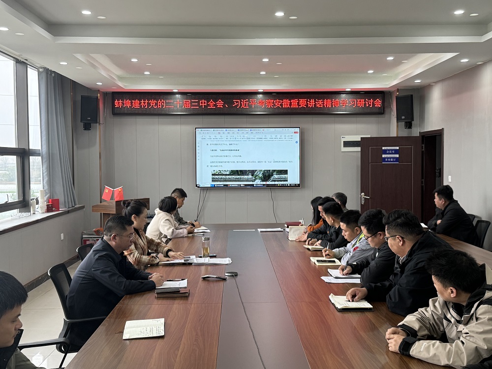 11月18日上午,蚌埠建材組織召開11月份黨員大會暨學習研討會,專題研討學習貫徹黨的二十屆三中全會精神學習成果及習近平總書記考察安徽重要講話精神。公司黨支部書記、工會主席沙薇莉主持會議,公司領導班子、全體黨員、發展對象參會。