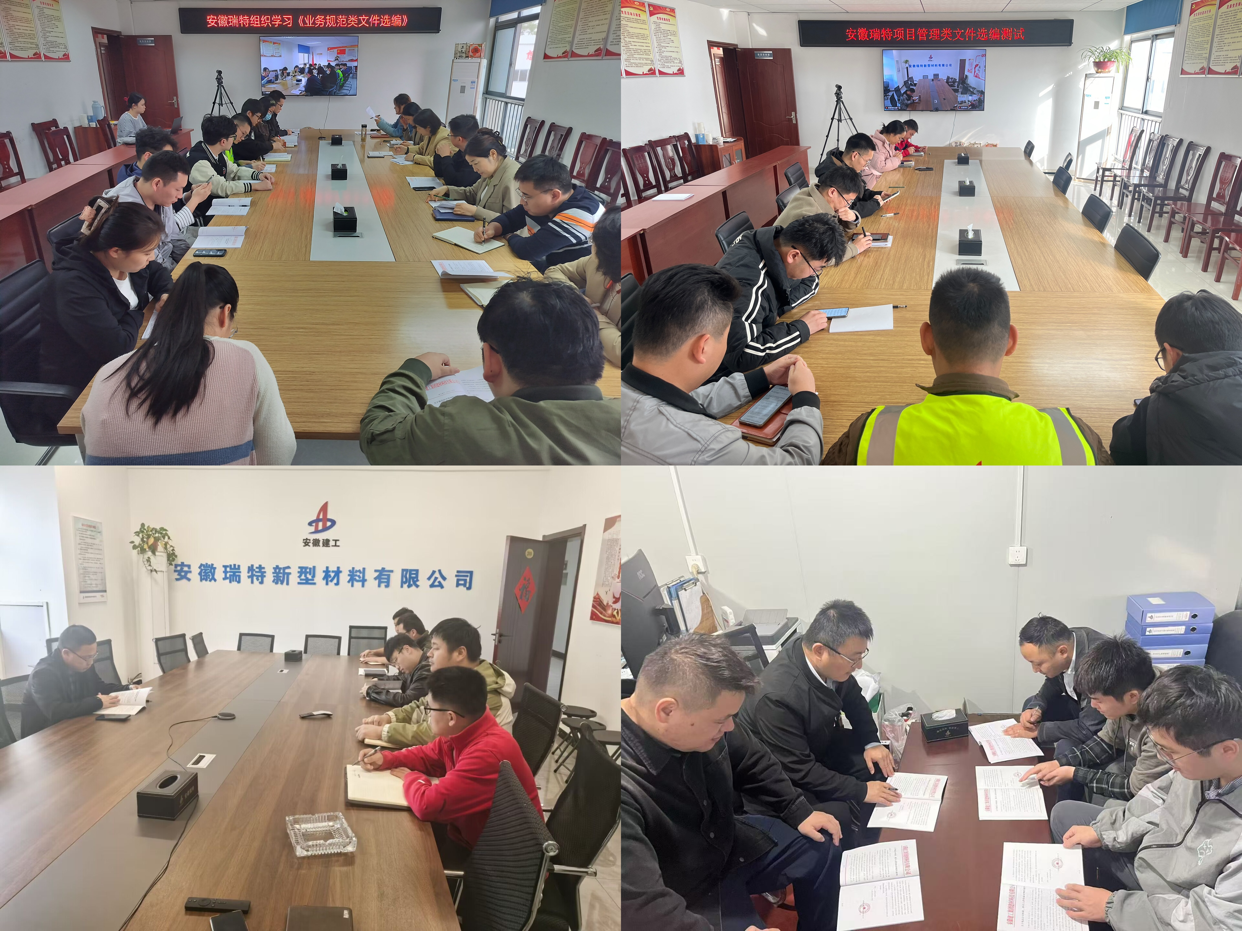 為進一步落實集團關于強化項目管理的決策部署,推動集團《項目管理類文件選編(2024版)》學習走向深入,安徽瑞特充分利用專題會、周例會等會議形式,對文件選編進行集中學習,鼓勵全體員工利用業余時間進行自主學習。全員發放學習《業務規范類文件選編》,并通過組織開展線上測試,強化業務工作規范性,著力打造一支業務過硬、能力過硬的高素質團隊,為項目的順利推進奠定了堅實的基礎。