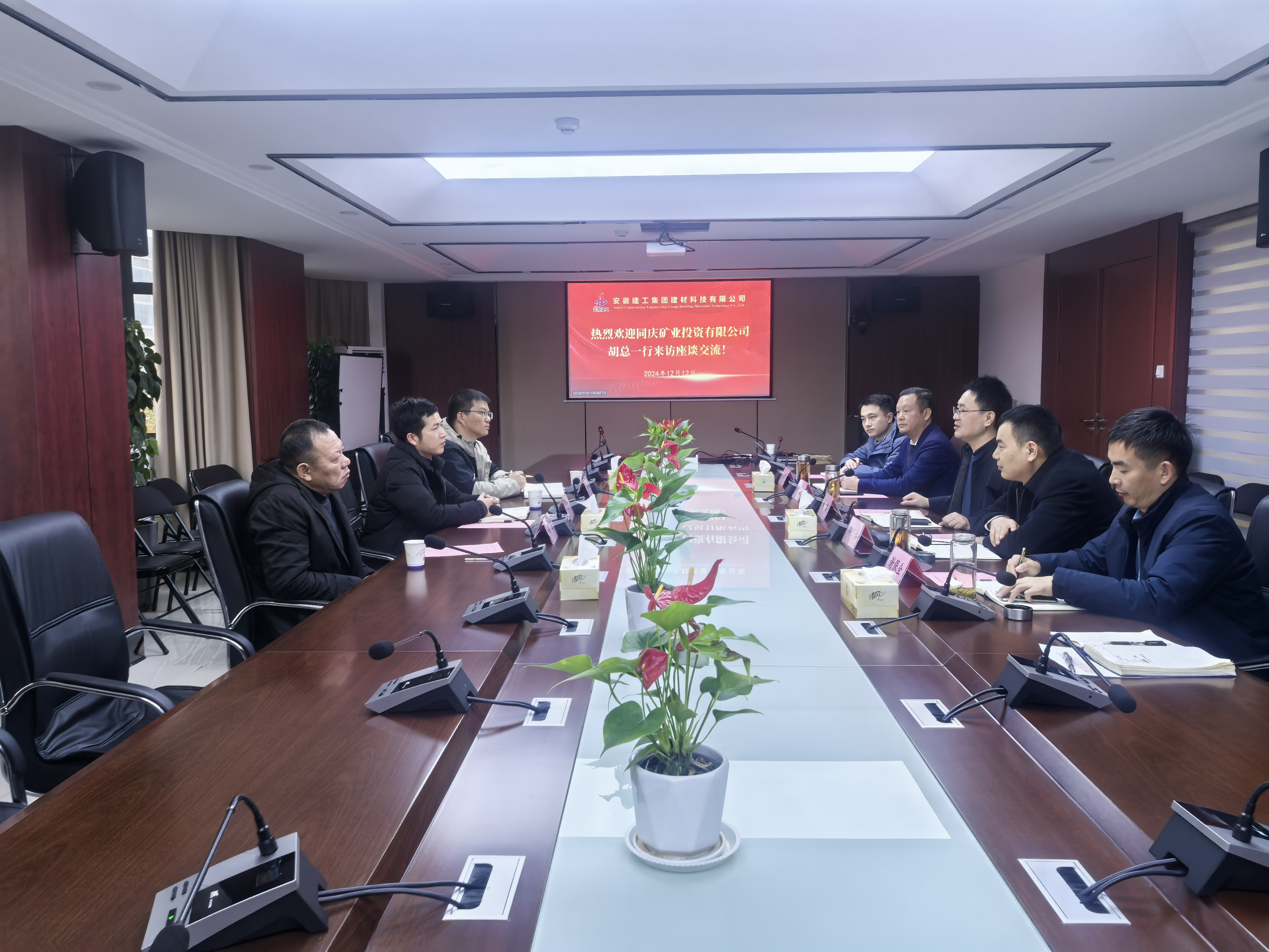 12月12日下午,安慶市同慶礦業投資有限公司黨支部書記、總經理胡志輝一行到訪安徽建工集團建材科技有限公司,公司黨委副書記、董事、副總經理李鑫熱情接待,并舉行布點合作工作座談會。
