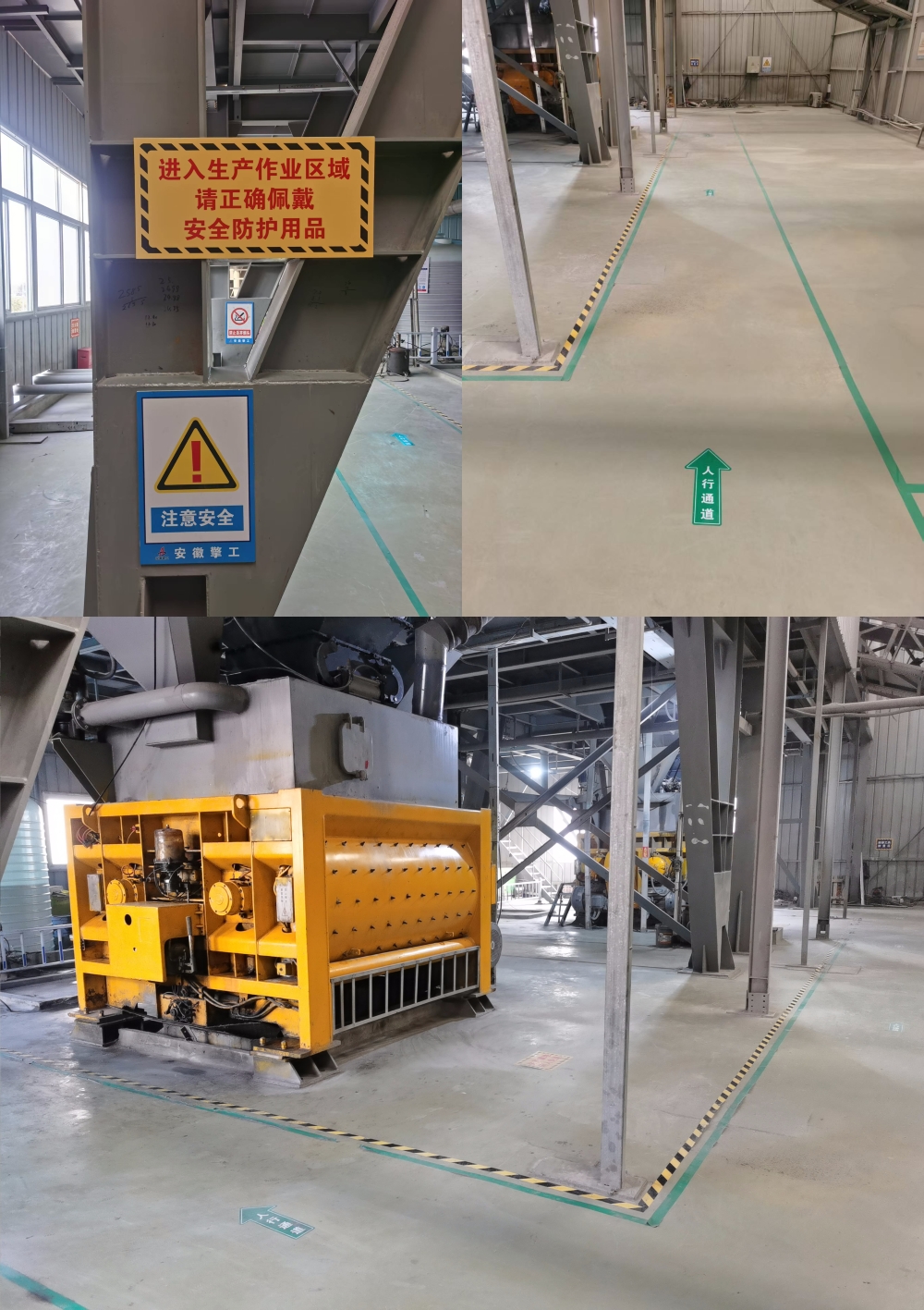 近期,擎工建材大力開(kāi)展安全提升行動(dòng)。安全標(biāo)語(yǔ)也是安全管理的重要部分,站內(nèi)設(shè)置了清晰醒目的安全標(biāo)識(shí),無(wú)論是在高聳的料倉(cāng),還是運(yùn)轉(zhuǎn)的攪拌設(shè)備旁,都能看到“進(jìn)入生產(chǎn)作業(yè)區(qū)域,請(qǐng)正確佩戴安全防護(hù)用品”“注意安全”的提示,重點(diǎn)區(qū)域還設(shè)置有專(zhuān)用人行通道,時(shí)刻提醒員工規(guī)范操作、注意安全。同時(shí),為每位員工配備了完善的個(gè)人防護(hù)用品,從安全帽、反光背心到防塵口罩,確保大家在工作中的人身安全。