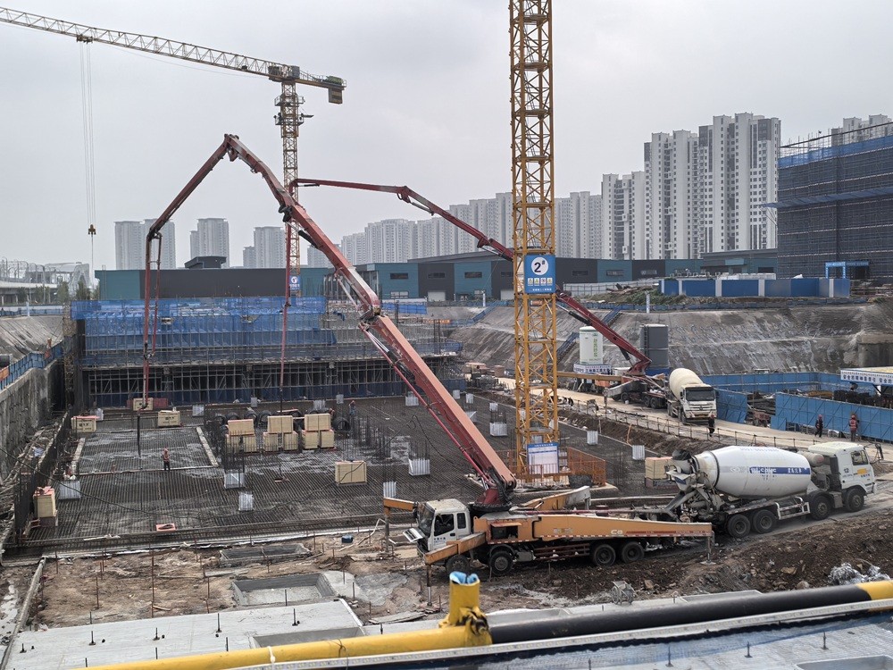 為確保澆筑順利,建工瑞特新材、建工擎工新材領導班子國慶期間多次赴項目一線勘察場地、督導進度,公司一線員工堅守崗位,緊密配合,針對設備配置、澆筑流程等關鍵環節,制定了科學合理的施工方案,明確了各環節的責任分工與時間節點,為澆筑作業的順利推進提供了全方位、強有力的保障。