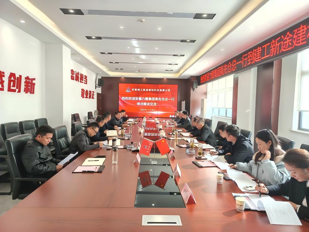 11月28日上午,安徽力聚投資集團(tuán)有限公司總經(jīng)理高先倉(cāng)率隊(duì)到訪建工新途建材,建工新途建材負(fù)責(zé)人邢大威熱情接待并主持座談交流。雙方圍繞各自歷史沿革、在建項(xiàng)目、資源優(yōu)勢(shì)、產(chǎn)業(yè)鏈等方面進(jìn)行深入交流。