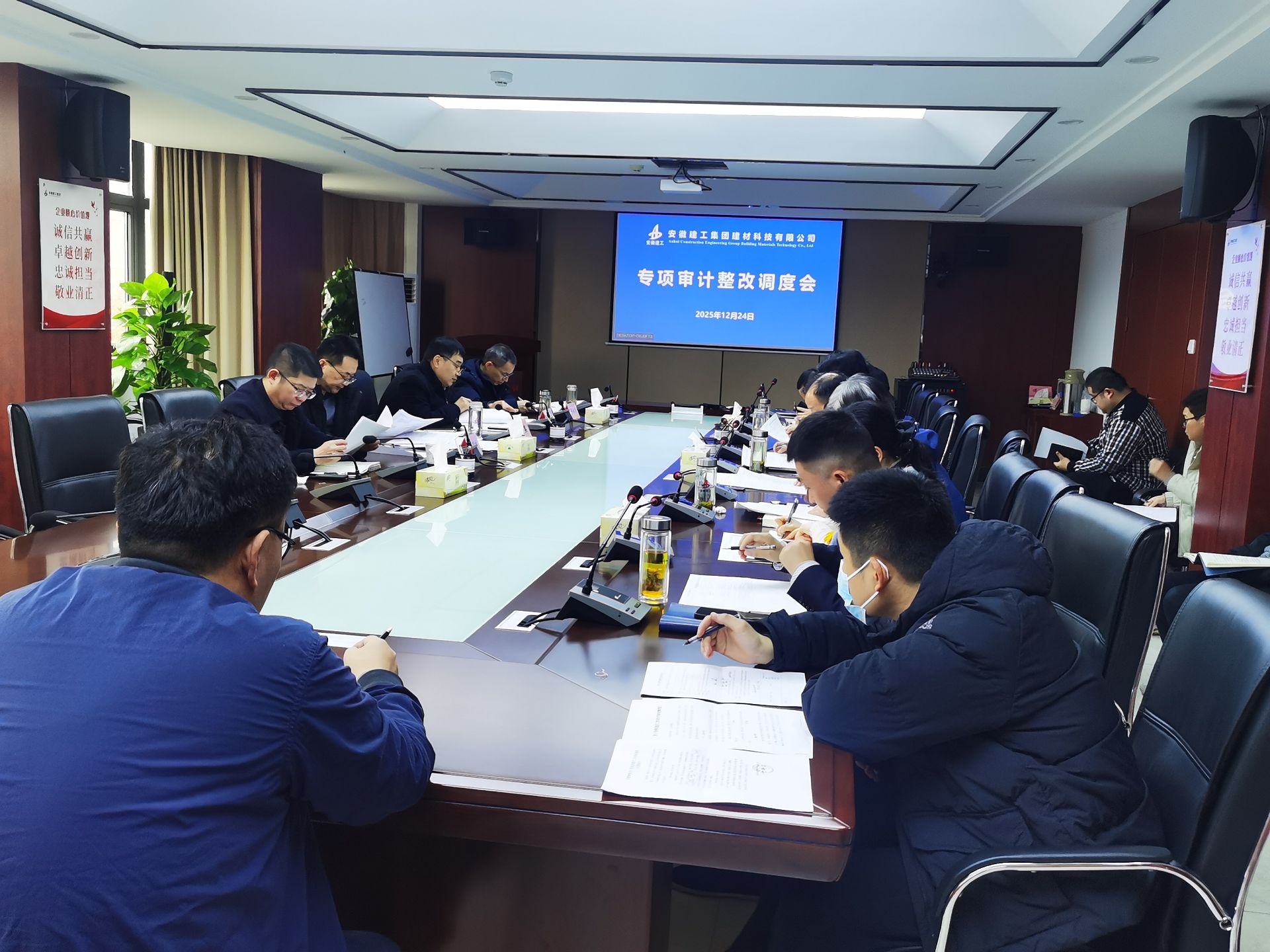 2025年12月24日上午,建工建材召開公司專項審計整改工作調度會,公司黨委副書記、董事、副總經理李鑫主持會議并講話。