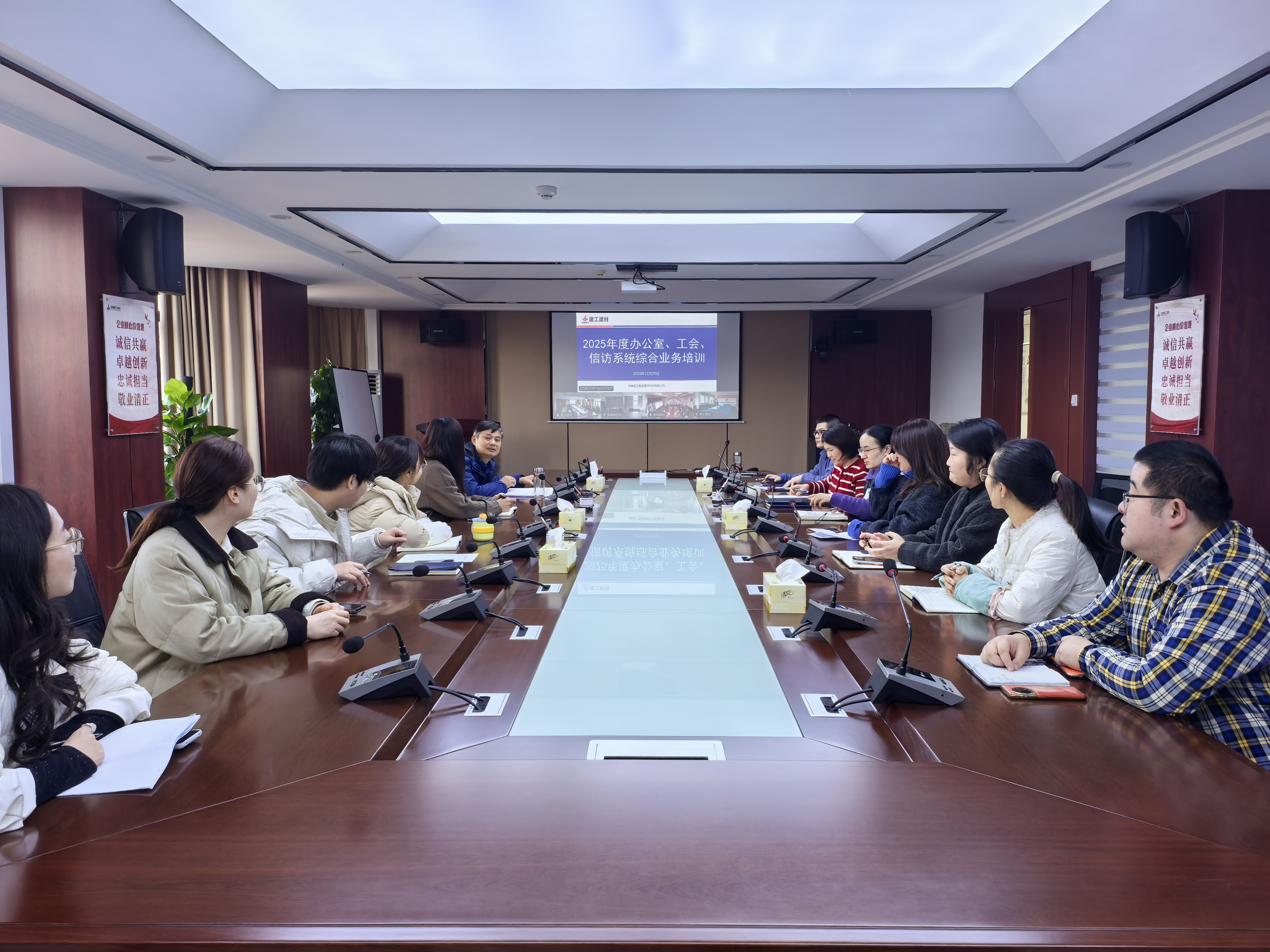 12月25日下午,公司成功舉辦了2025年度辦公室、工會、信訪系統綜合業務培訓。本次培訓采用“線上+線下”相結合的方式。公司辦公室主任、工會副主席張躍武主持會議,所屬各單位、建管辦的綜合辦以及機關部門相關人員參加培訓。