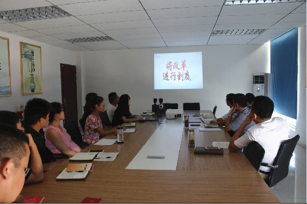 為慶祝建黨九十六周年,全面展示改革的進展和成就,會中,全體黨員和入黨積極分子觀看了專題片《將改革進行到底》第一集《時代之問》。