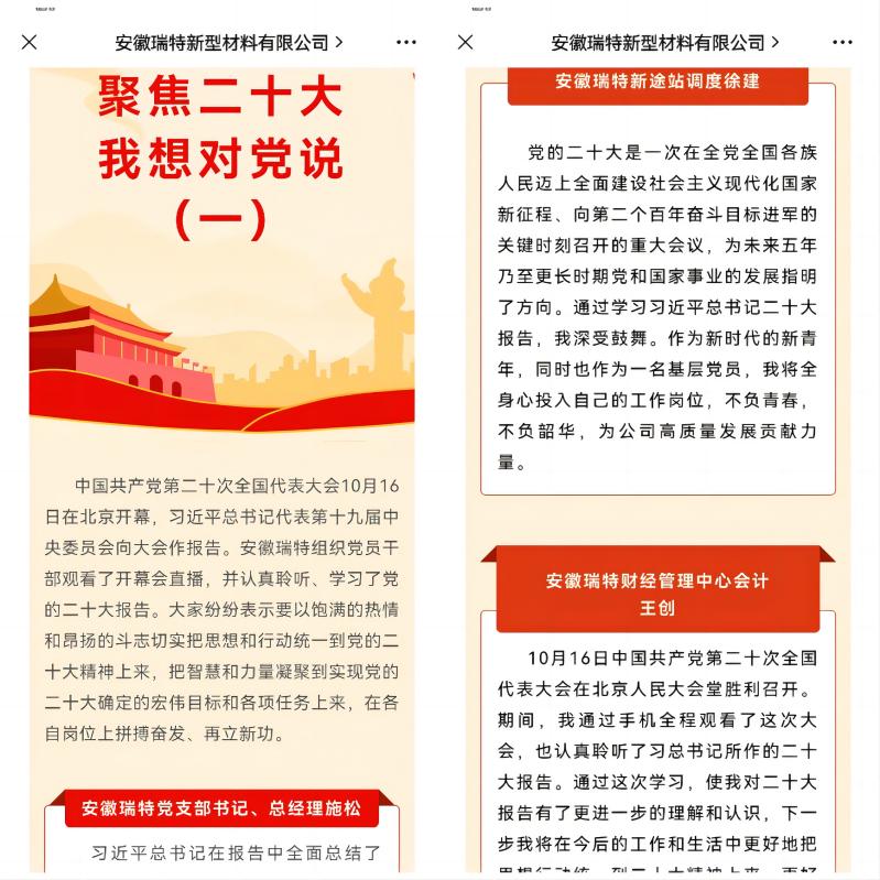 學思踐悟二十大 踔厲奮發譜新篇 ——安徽瑞特黨支部“三學三促”深入學習貫徹黨的二十大精神