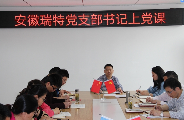 為全面貫徹落實十九大精神,安徽瑞特黨支部于4月12日上午在黨員活動室召開了支部書記上黨課活動。會議由安徽瑞特黨支部書記、經理石杰主持,全體黨員、積極分子參加。