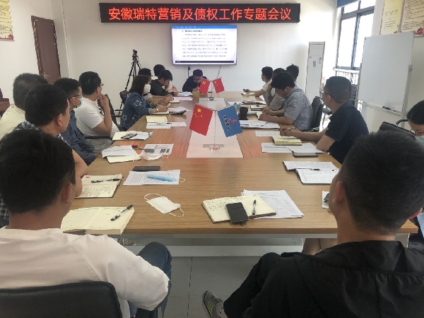 2020年5月11日上午,安徽瑞特召開營銷及債權專題會議,公司領導班子、營銷全體人員、財務、核算負責人參加會議,會議由公司副經理汪洋帆主持。